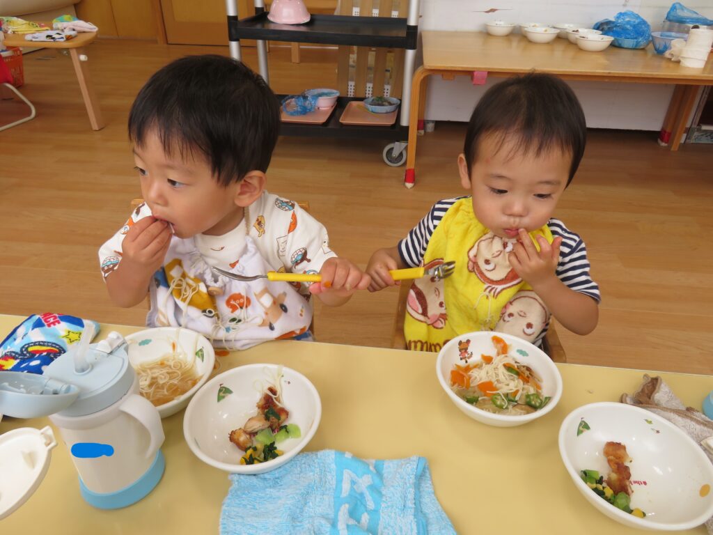 保育所の子ども達は暑さに負けないくらい元気いっぱいの姿が見られています。まだまだ暑い日が続くので、引き続き熱中症にも気を付けながら楽しく過ごしていきたいと思います。