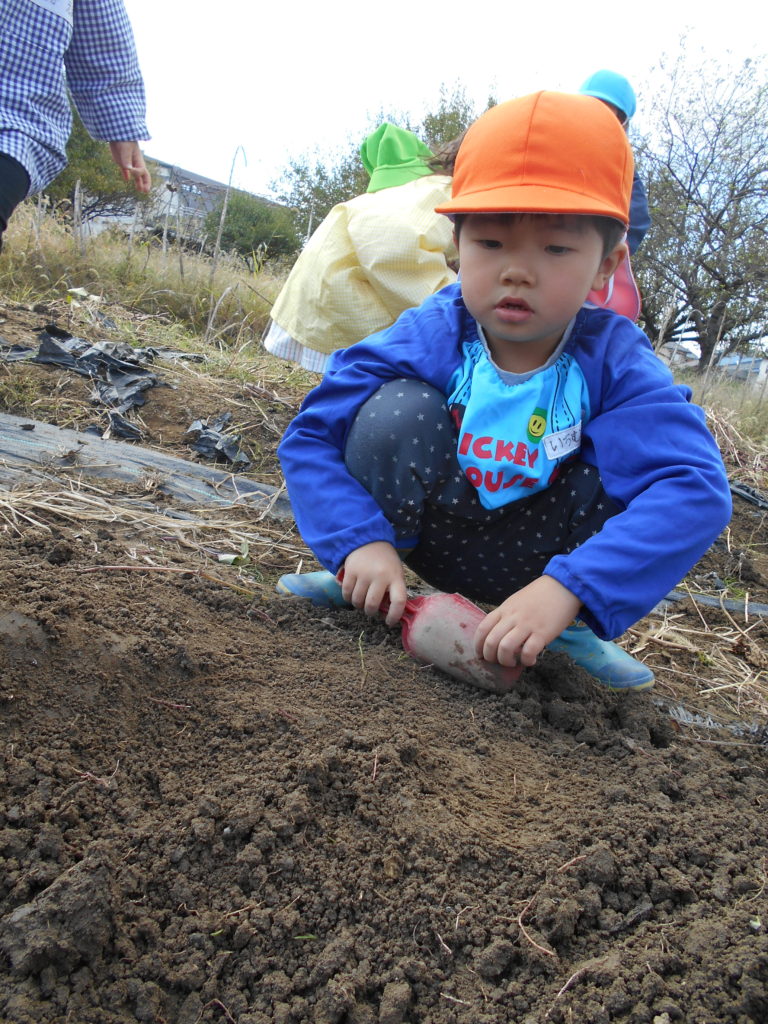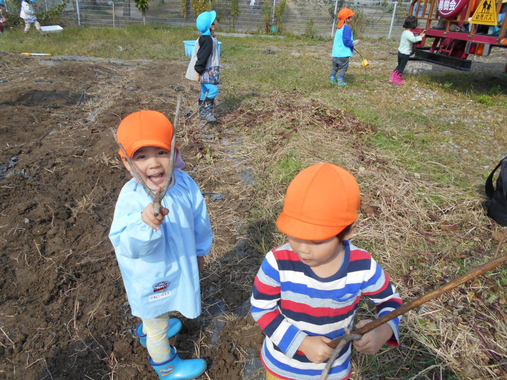 きのうは天候にも恵まれお芋堀をしました。 畑には子供たちの心をくすぐるお宝がいっぱ~い へびのような細い芋や大きい幼虫❤掘れば掘るほどわくわくが増えていきます。 楽しい経験が大きくなってものこっているといいなあ~。