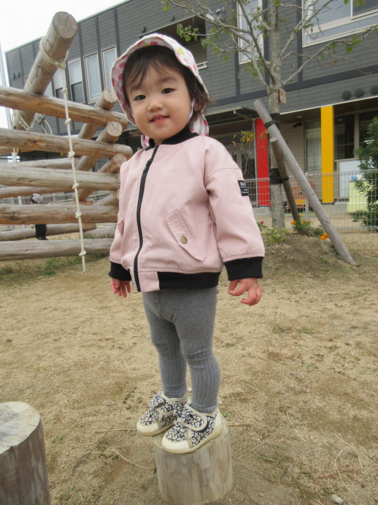 丸太の上に登ってポーズ☆上手に登れたね♪