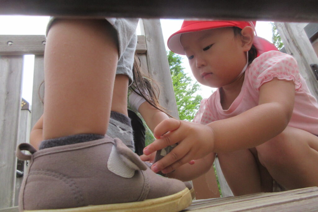 年下のお友だちが靴を落としていたようで、届けるだけではなく、履かせてあげる優しいお姉さんな姿も見られました・・・!!!