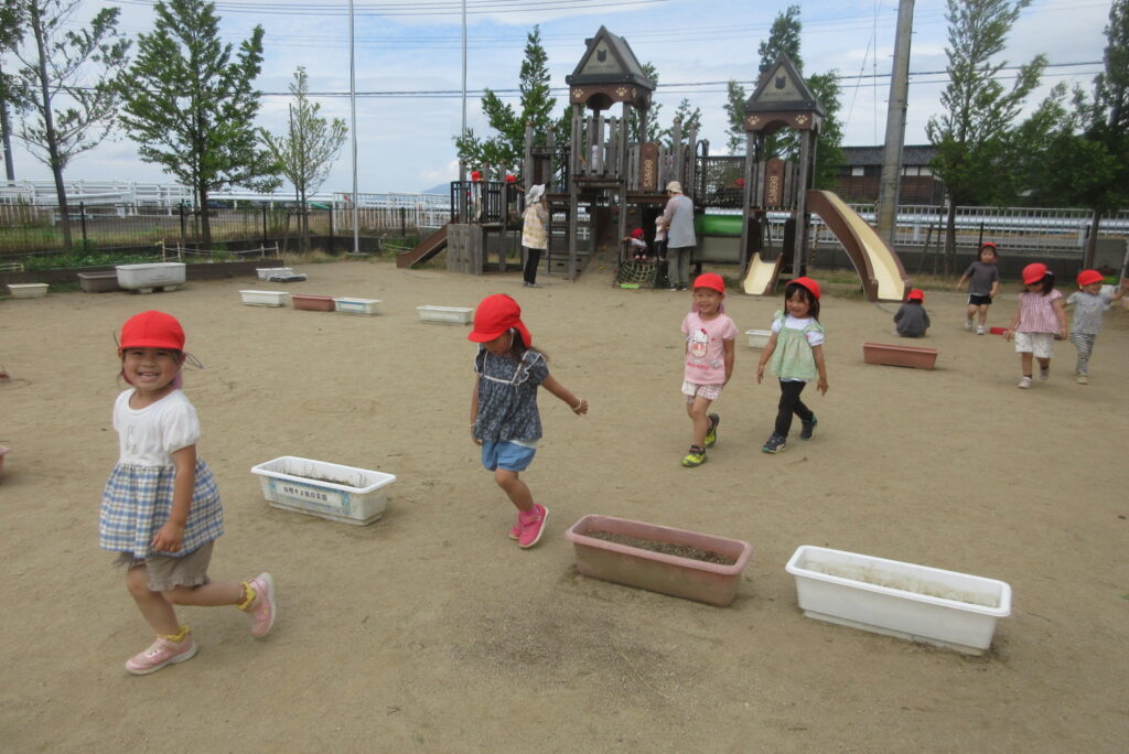 保育者との追いかけっこも楽しみました😲運動量も増え、思いっきり身体を動かしていました😙
