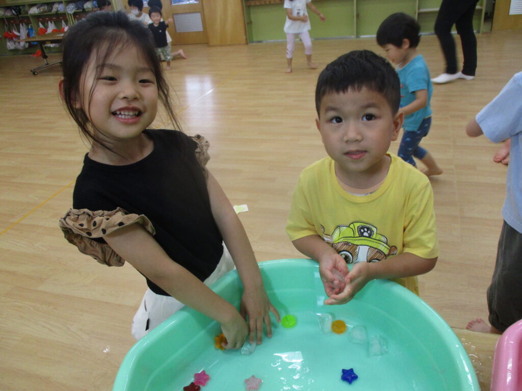 「つめた~い!」と言いながらも皆気持ちよさそうに触っていましたよ。