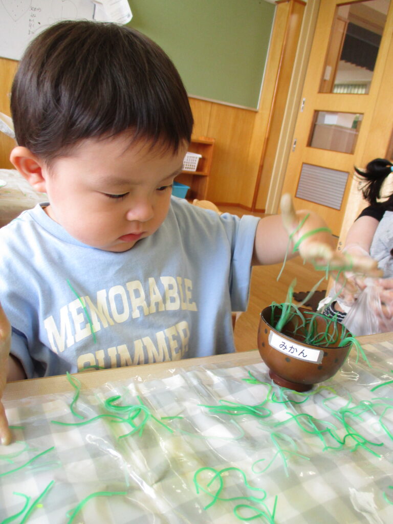 不思議そうな子やダイナミックにまぜまぜする子も。