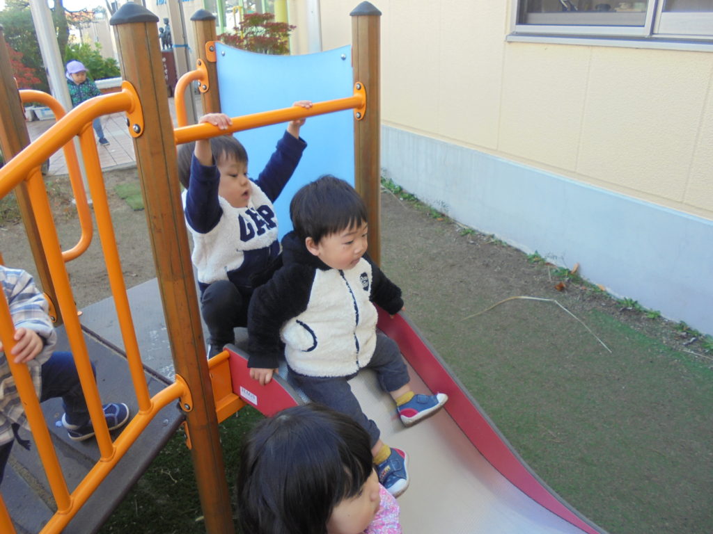肌寒い日でしたが、つぼみ組・わかば組のお友達は元気いっぱい遊びましたよ☆