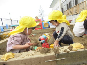 新しいクラスや環境にも少しずつ慣れてきたようで、晴れの日にはのびのびと園庭遊びを楽しんでいます♪ 砂遊びでは スコップなどの道具を使って、慎重に型に砂を入れてみたり 型などに入れた砂をひっくり返し、スプーンで砂の形をつぶ … 続きを読む 晴の日は…🌞【白根そよ風保育園 2歳児わかば組】