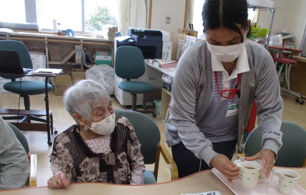 新しい職員さんがデイYOUに仲間入りです😊😊ネパールから来られた『シュリさん』です😊😊お客様にお茶を出してくれています🍵