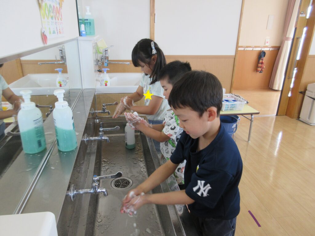 4・5歳児は子ども自身が手洗いをしました。