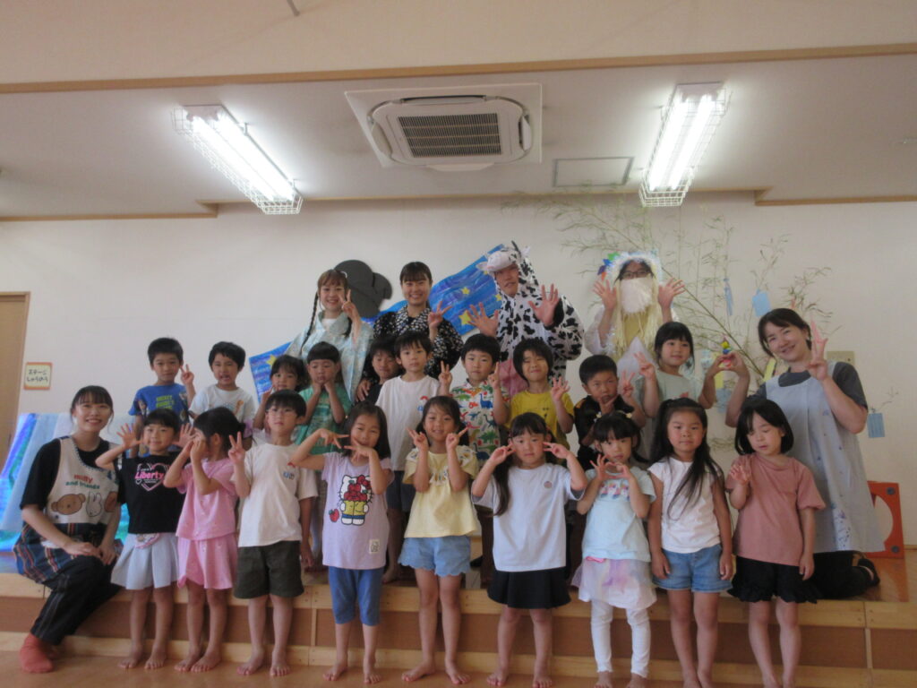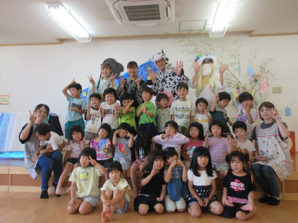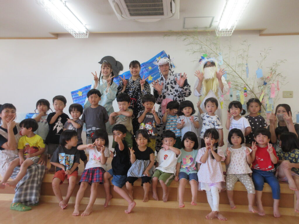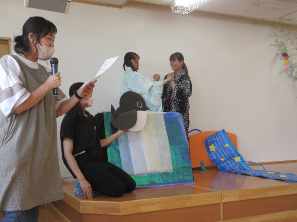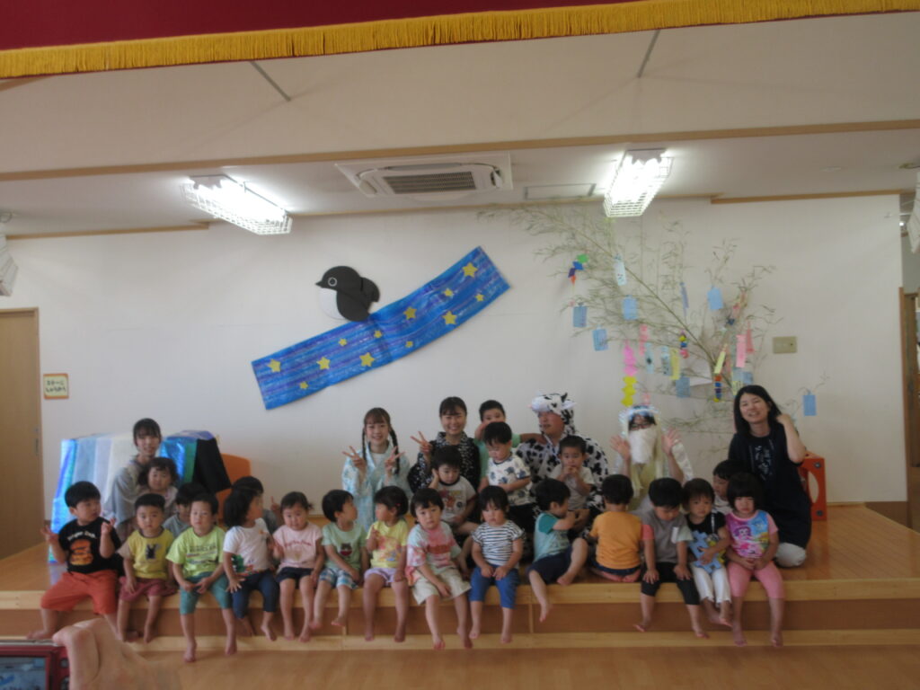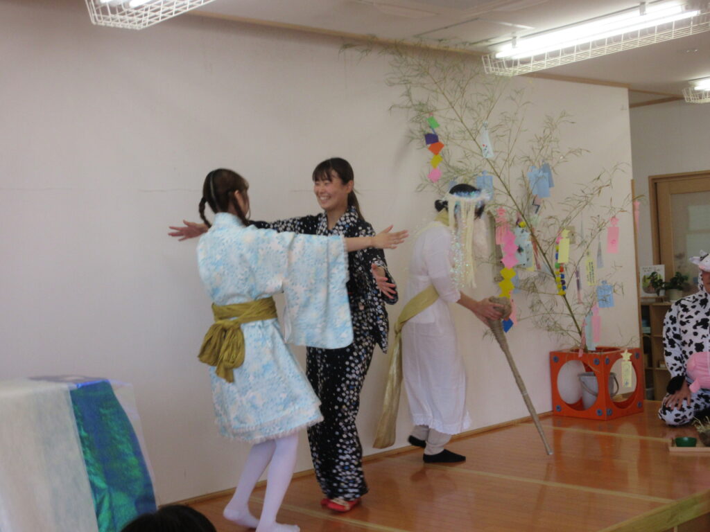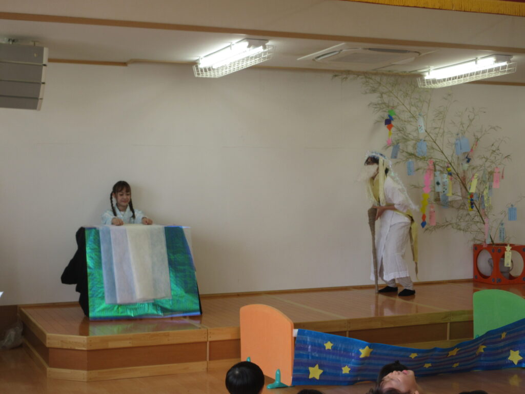 今年は職員劇を通して、七夕の由来を子ども達に伝えました。