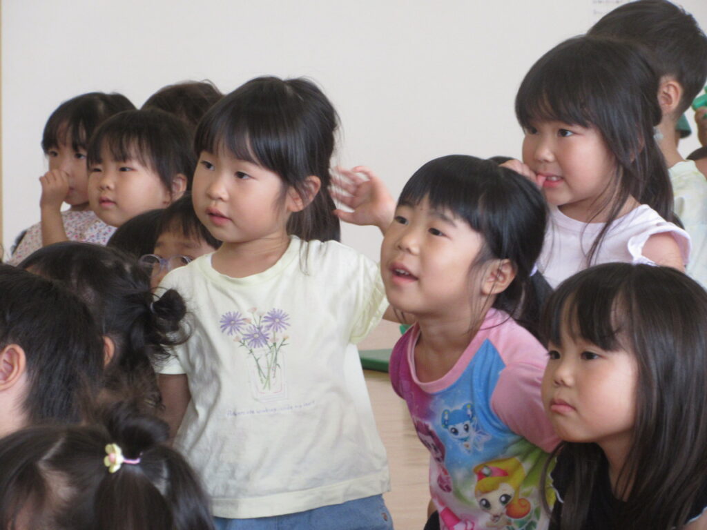 大好きな先生たちがいつもと違う格好をして演じていることで、子ども達は興味津々!!