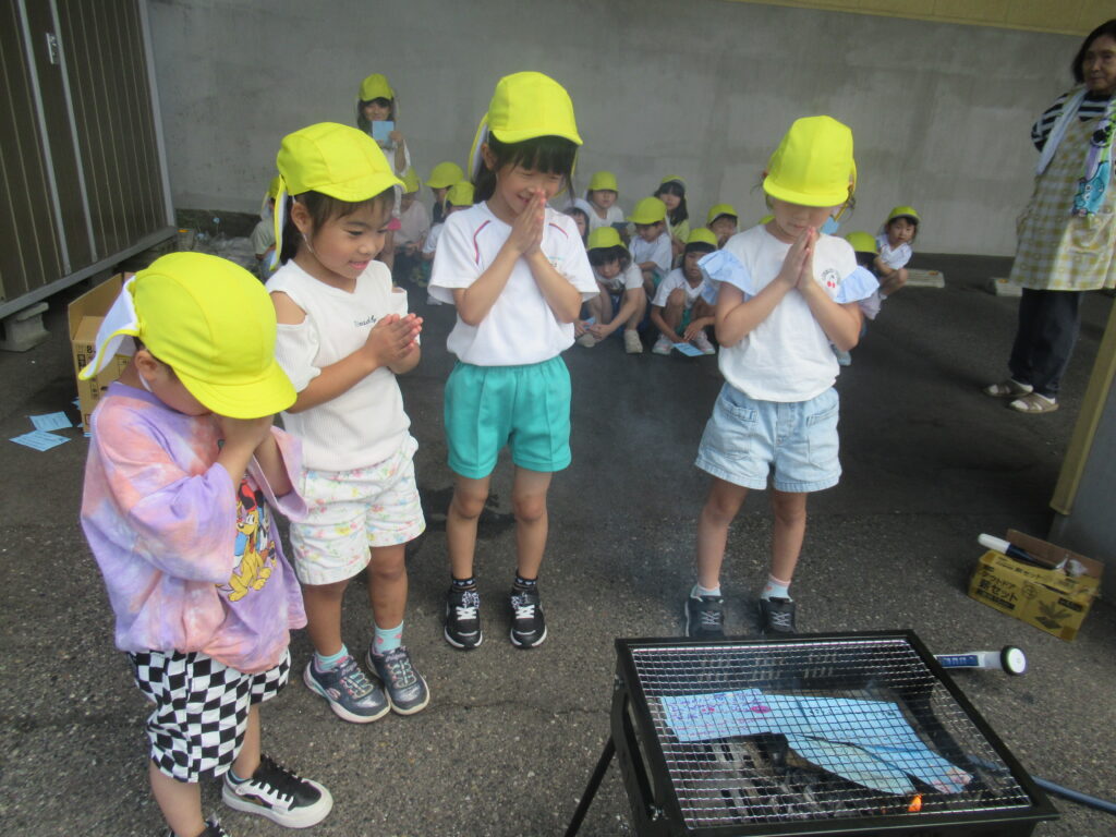 燃えていく短冊に手を合わせてお願い事をしました。みんなの願いが叶いますように🎋🙏