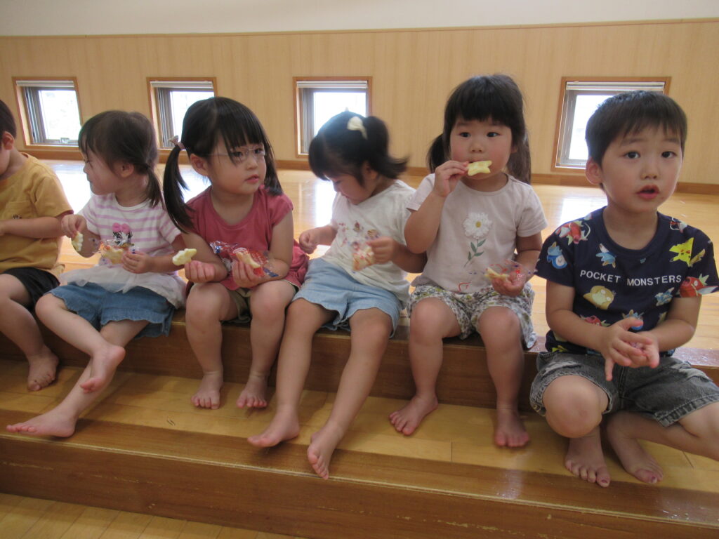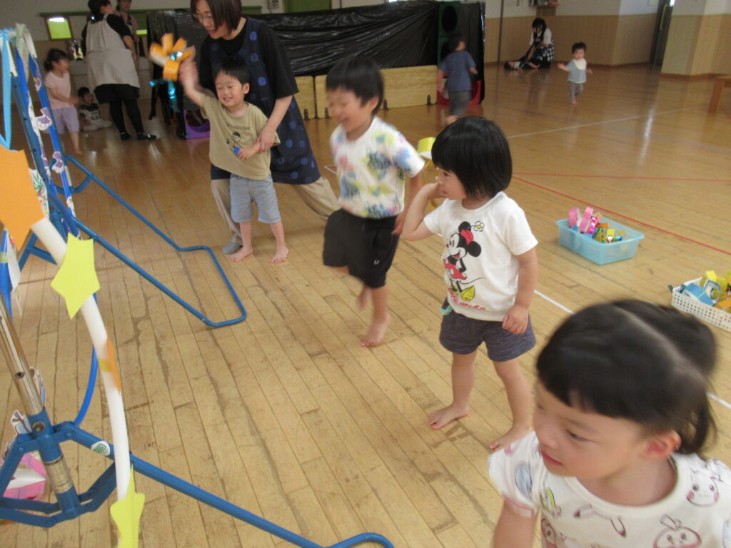 七夕集会を行いました。今年はブラックシアターを見て七夕の由来について学んだり、織姫様と彦星様が遊びに来てくれてお仕事を紹介してくれました!