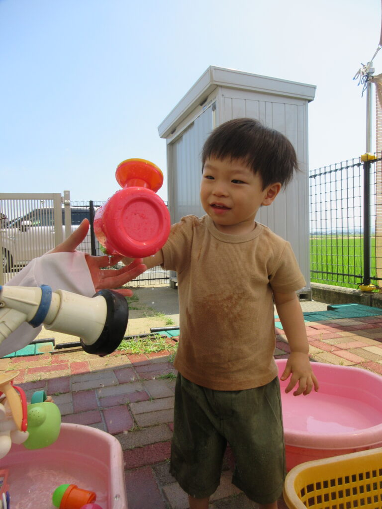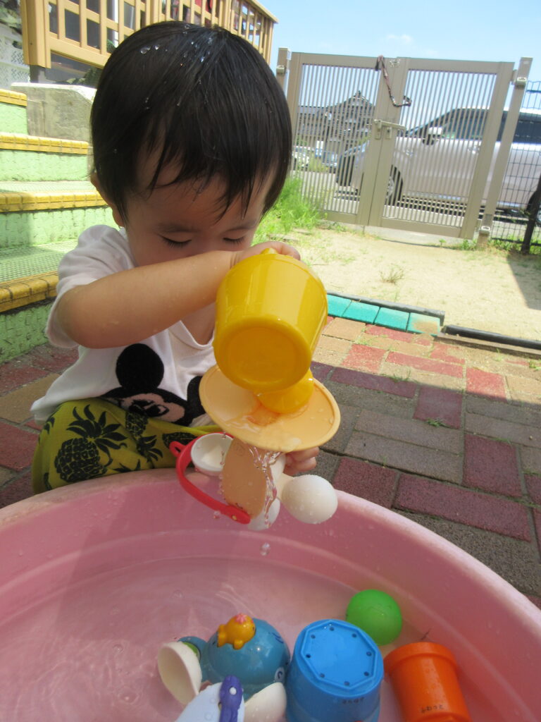 ついに今週から水遊びが始まりました!水遊び道具のご用意、ありがとうございます😊