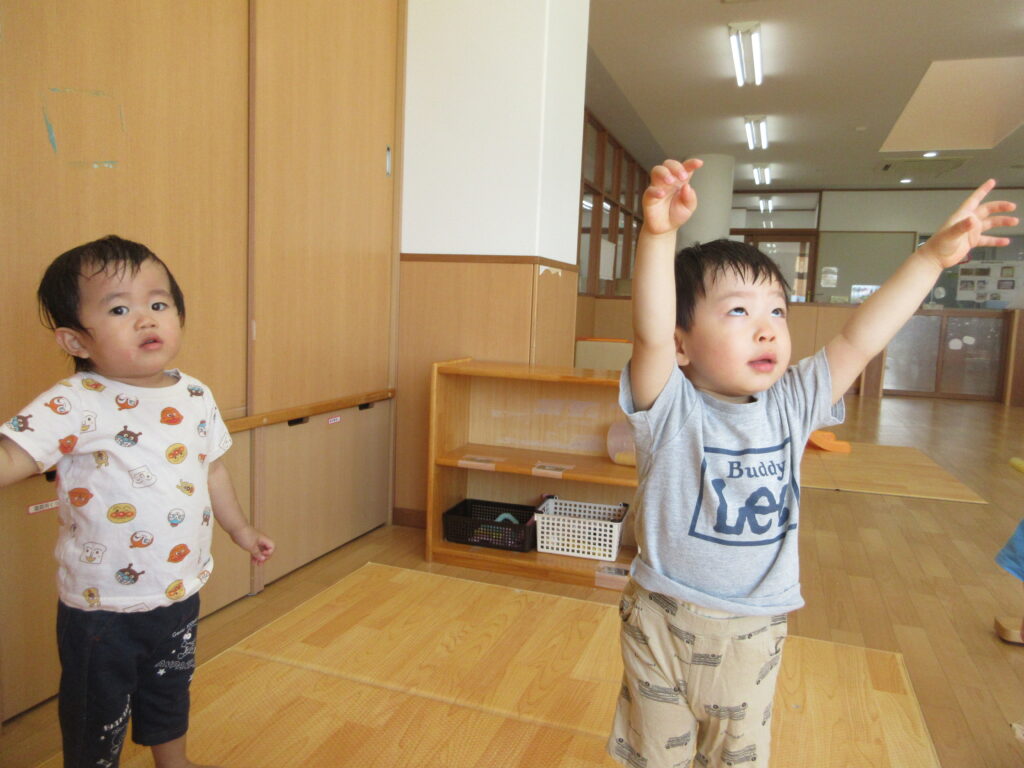初めての水遊び、お家の方もお子さんがどんな反応をするのかな?楽しめるかな?とドキドキだったかと思います。子どもたちにとって”初めて”の経験はドキドキの気持ちが大きいと思います。そんな気持ちの中にある「なんだか気になるなぁ」「やってみたいなぁ」の気持ちを大切にしています。保育者がやってみせることで「楽しそうかも」と思ったり、「先生やお友だちと一緒ならやってみよう」と安心したりする中で、ちょっぴりドキドキで不安な気持ちがやってみようの気持ちに変わり、自分で体験し、感じる経験ができるといいなぁと思います💭