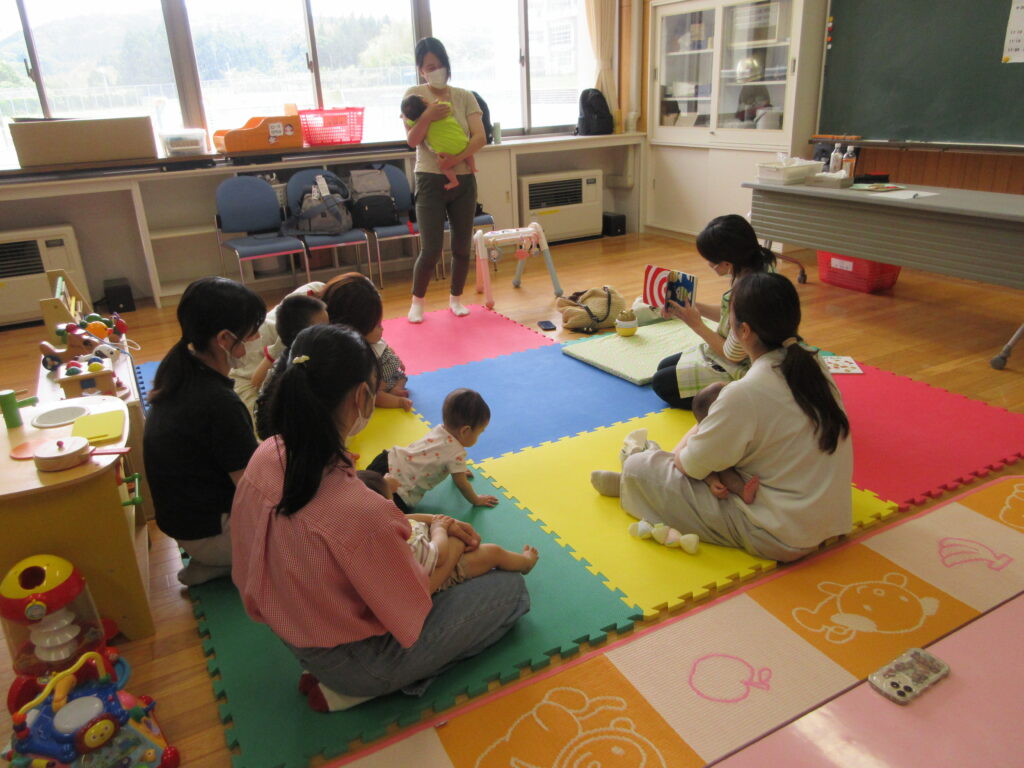 異年齢での交流やお子さんを通じてのお母様方同士の楽しいおしゃべりも弾みます。抱っこし合ったり、一緒に遊んだり、おやつも食べながらゆったりした時間が流れていました。