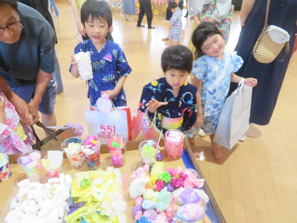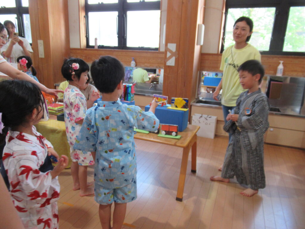 7月11日(金)に、子どもたちが楽しみにしていたトキっ子まつりがありました!午睡が終わると、「お祭りいつ?」と気持ちがそわそわしている様子が子どもたちから感じられました。お家の方が迎えに来てから、甚平や浴衣に着替えてドレスアップ!とても可愛らしかったです。祭りが始まると、各コーナーのお土産をもらい子どもたちは楽しい時間をお家の方と一緒に過ごしている様子が見られました。