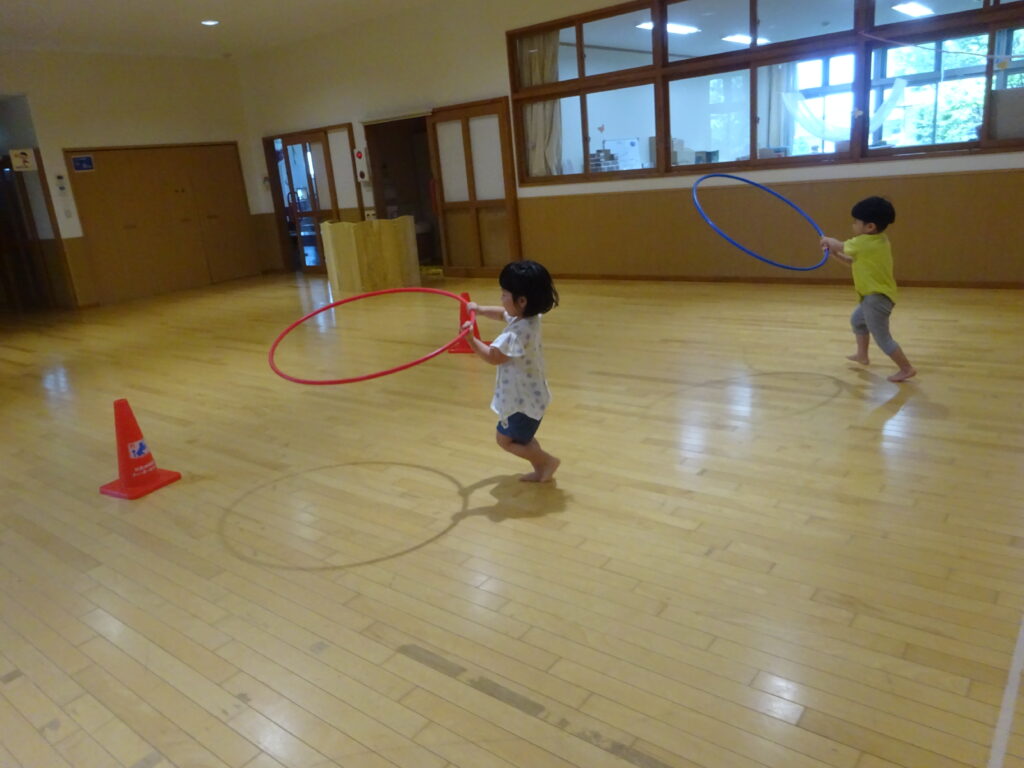 そら組さんでも「お友だちのことを考えてね」と話しながらうきわリレーを楽しみましたよ。