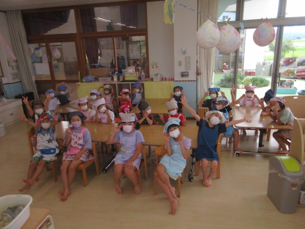 あっという間に着替え終えたかっこいいたいよう組さん!!では、さっそくクッキングスタートです😊