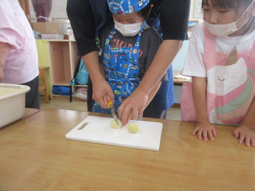 ということで1人1~2個ずつじゃがいもを切りました!!