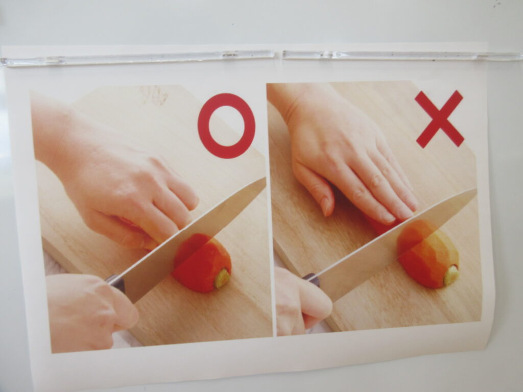 みんなで猫の手🐈を確認してから順番で包丁を使用します。