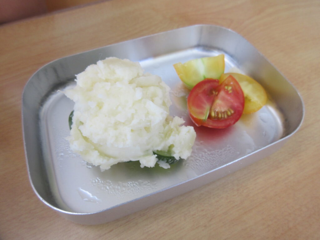 じゃがいもと同じように、たいよう組さんが育てて収穫したトマト2種を添えたら出来上がりです♪