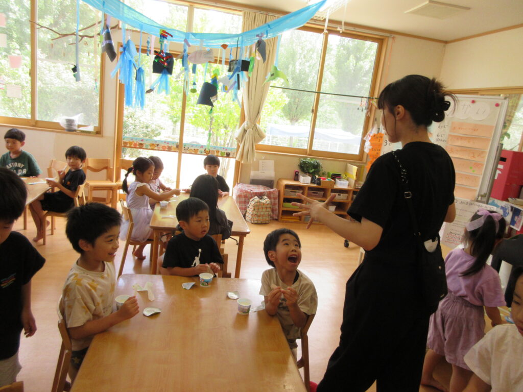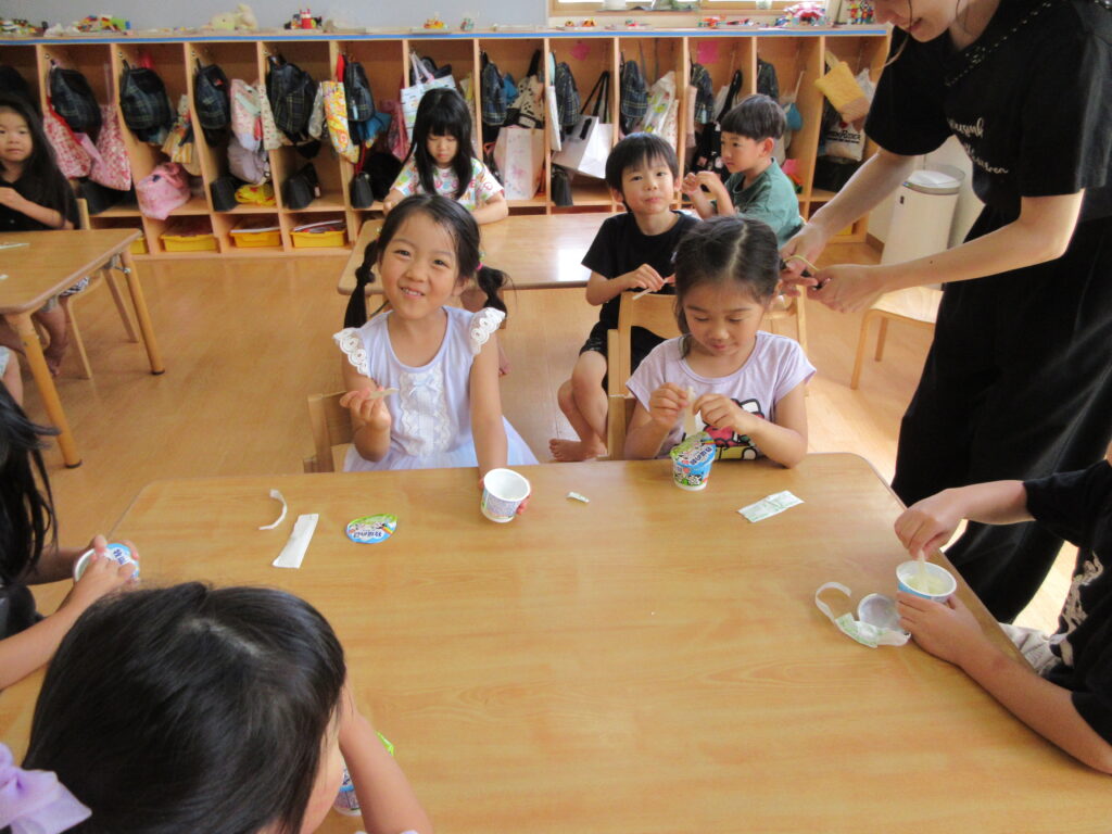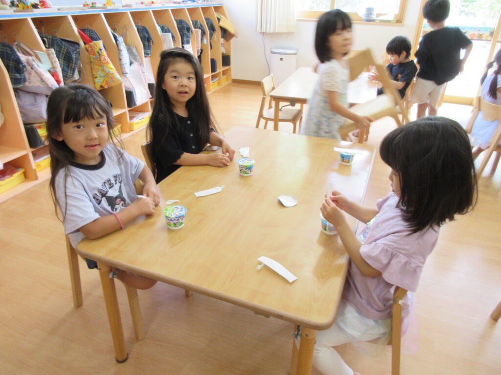 昼寝を済ませた子どもたちは、おやつを食べ「お泊り会モード」にシフトチェンジ!!