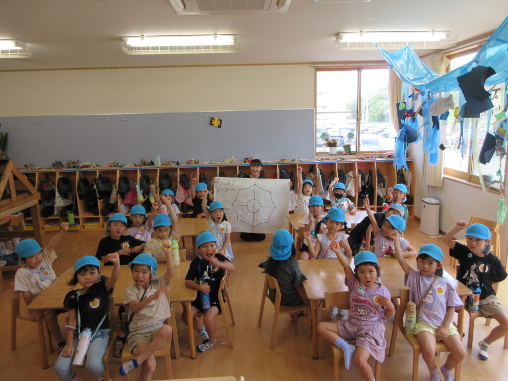 担任より、お泊まり会バージョンのたいようメーターを渡された子ども達!
