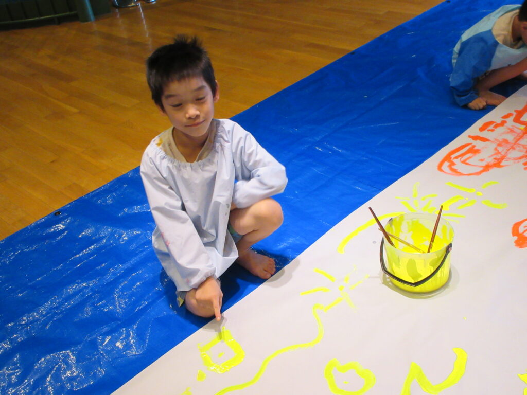 次第に、「ぼくがかいたのだ」「あそこにある」と自分の花火を探したり、友達に教えたりしながら鑑賞していました。