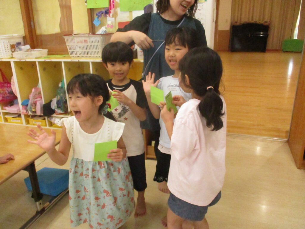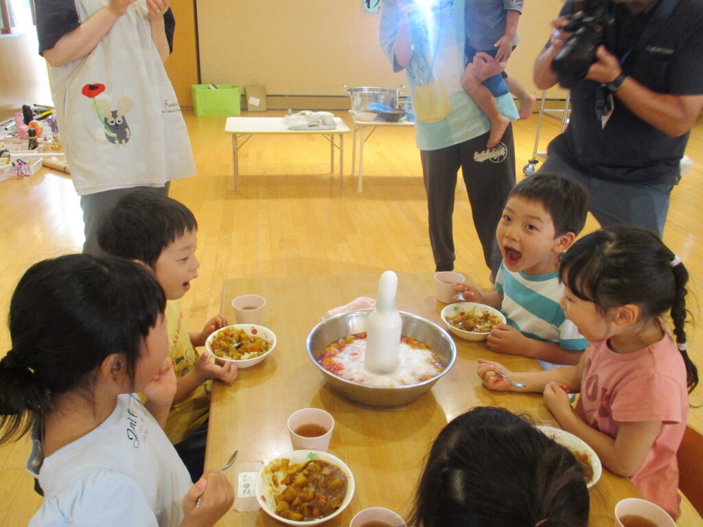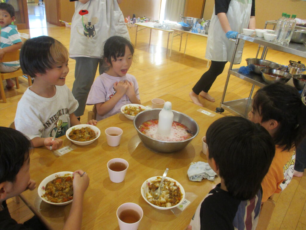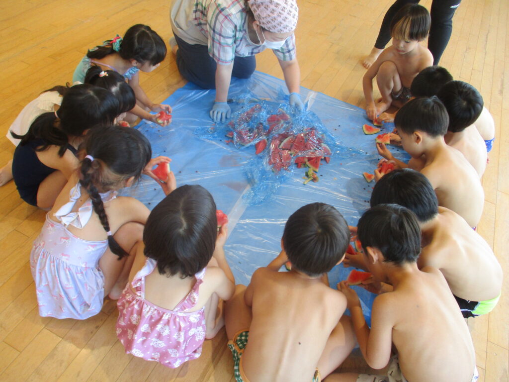 ニュース&トピックス YOUなかの保育園 ☆くま組 わくわく保育☆【YOUなかの保育園】 掲載日2025.7.22 カテゴリー保育園 くま組さんになってからこの日を一番に楽しみにしていたお友達がたくさんいました。子どもたちが『やりたいこと』をみんなでずっと前から考えて待ちに待った当日を迎えました。 まずは『スイカ割り☆』1番子どもたちから「やりたい!」といった声が多かったです。 この日のためにMyアイマスク&棒を作りました☆ みんなの声を頼りに「えいっ!」 「われたかな?」と確認中・・・ 「割れたー!!!」 「おいしーい!」 みんなで食べるスイカは格別! あっという間になくなりました☆ 次は『水遊び☆』汗を流して思いっきり楽しみました! 夕食はカレーライス!みんなでクッキングスタート☆ 「おうちで練習してきたよ!猫の手だよね」 お米も自分たちで研ぎました まぜまぜ~いい匂いがしてきたね! 美味しく出来上がりました☆ 「いただきまーす!」 いよいよ夜の保育園探検に出発☆ みんなで宝を探しに行きます! 「どこにあるかな?」 最後は『花火』みんなで「きれーい!すごーい!」と大盛り上がりでした! 花火も終わってお迎え待ちの子どもたちに「楽しかった人~?」もちろん「はーい!!!」みんないい笑顔です! 子どもたちが意見を出し合いながらみんなで考え作り上げた『わくわく保育』は大成功!普段とは違う特別感を感じながら、楽しい思い出ができました☆