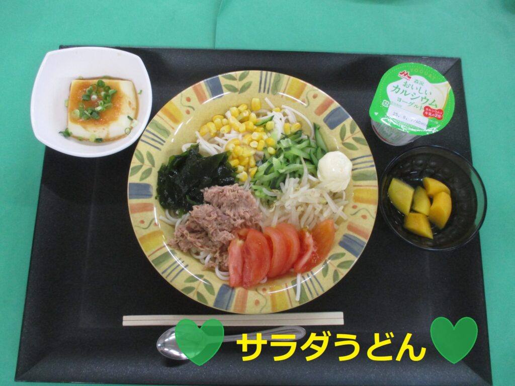 サラダうどん 豆腐田楽 果物🍍🍍🍍