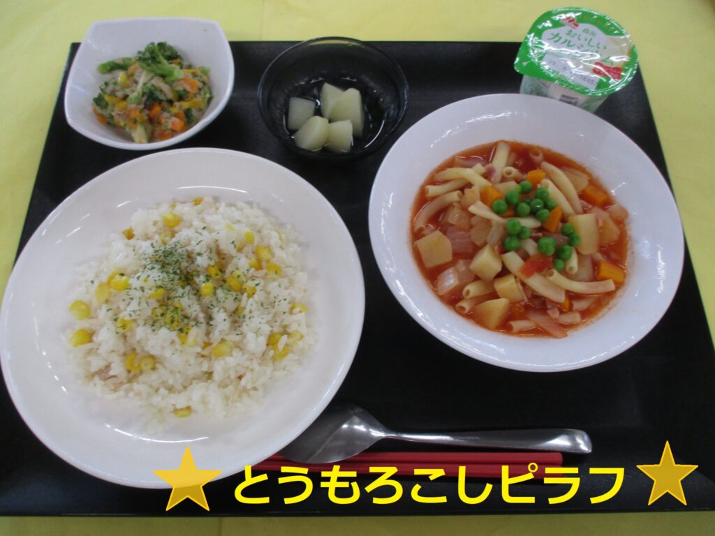 とうもろこしピラフも、今が旬のとうもろこしをご飯の中に入れ、コンソメで味を付け、夏ならではのご飯になりました😊😊
