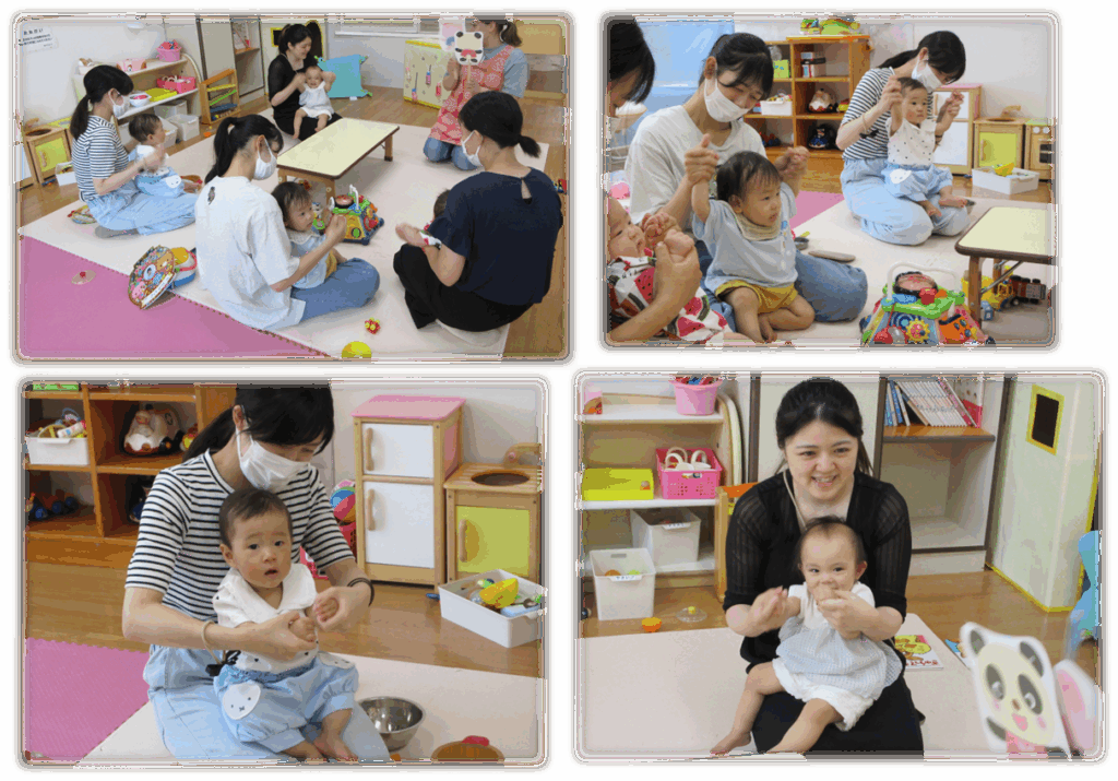 お母さんと一緒にふれあい遊びを楽しみながら笑顔がたくさん見られた時間になりました♪