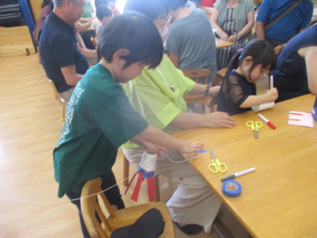 ハサミやテープの扱いが更に上手になってきたことで、自分がイメージした物を作ることが嬉しい様子ですね(^^)