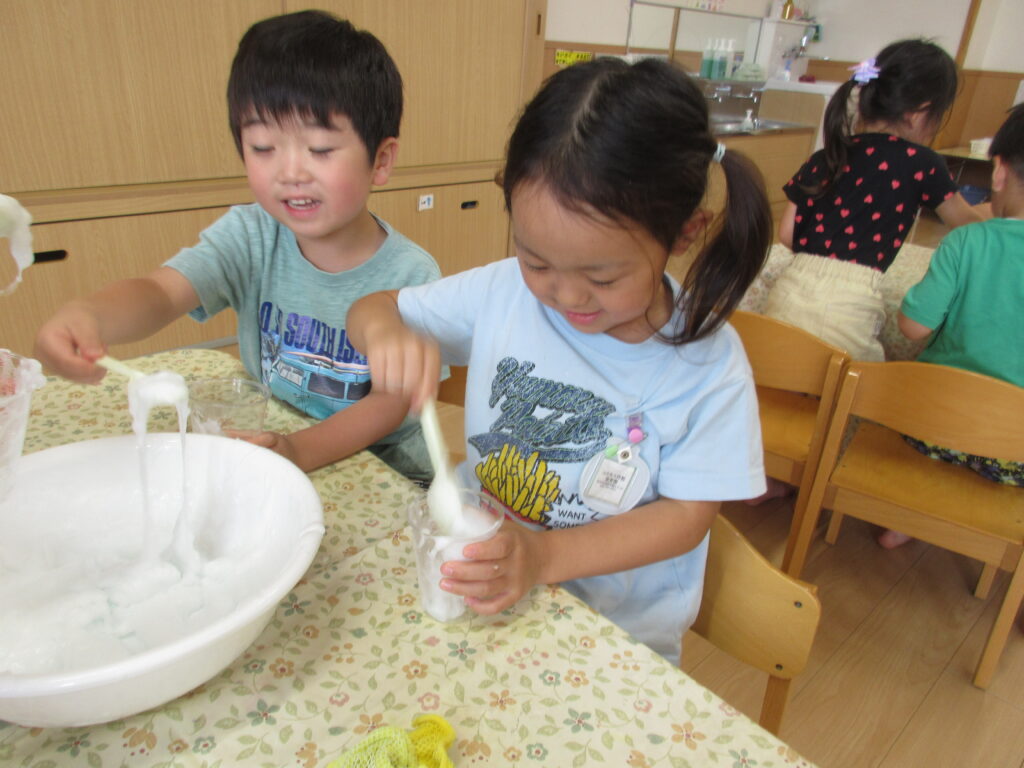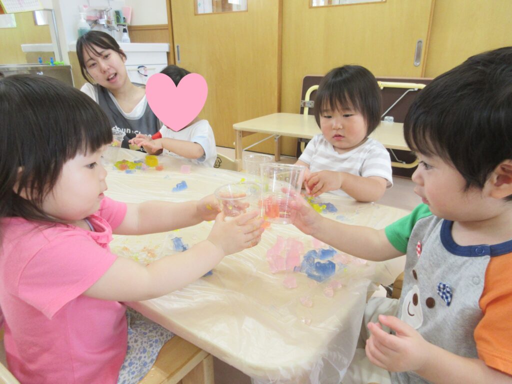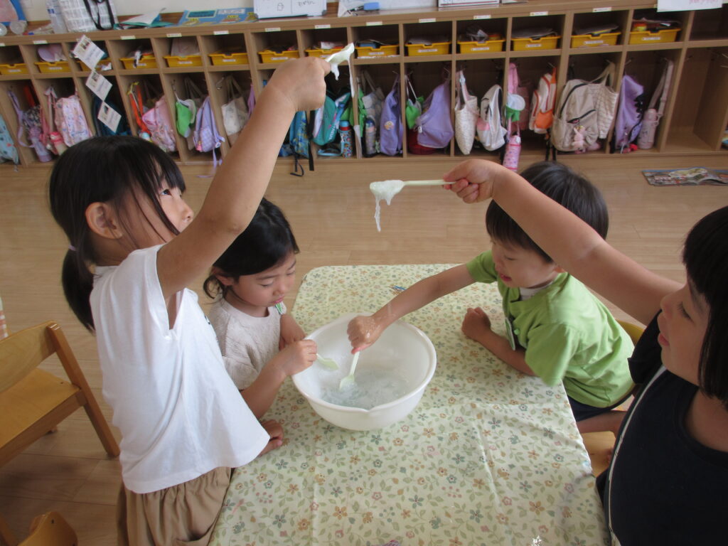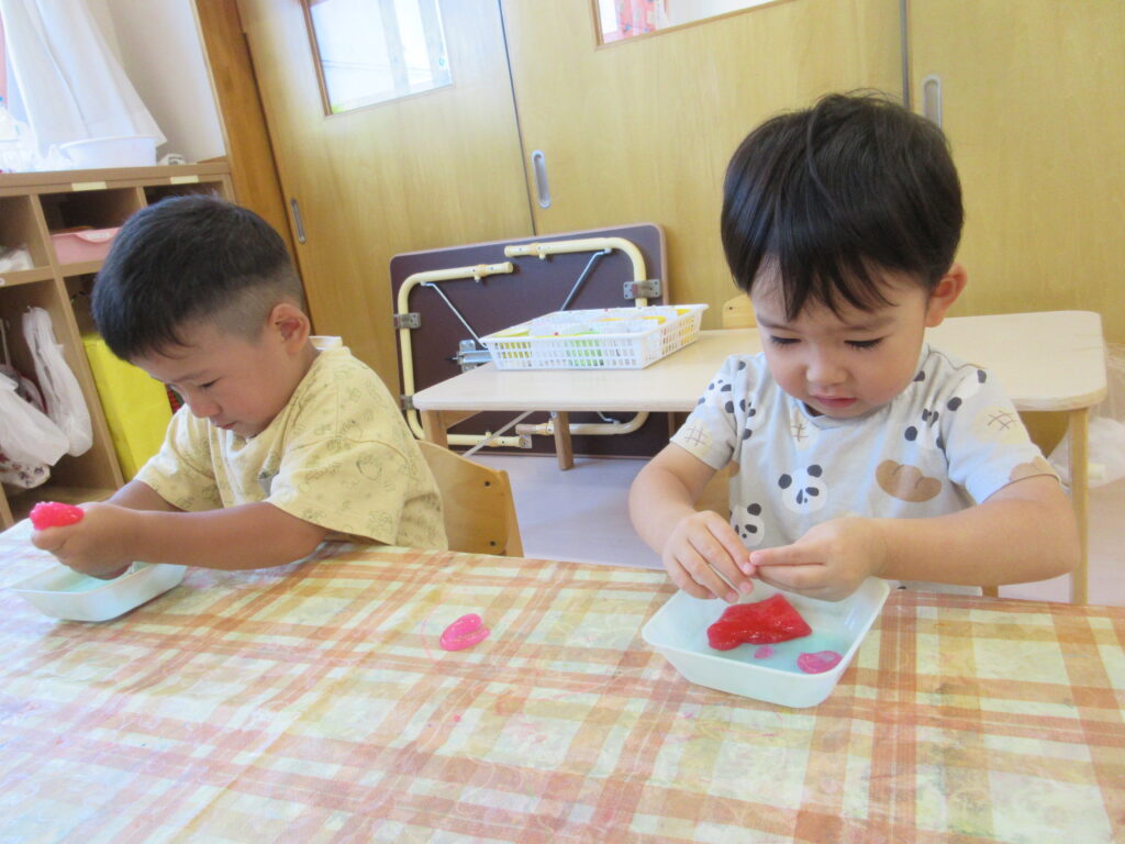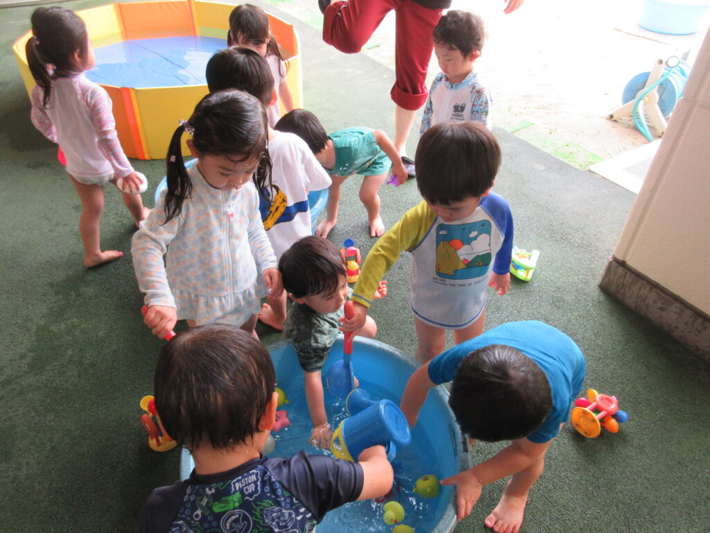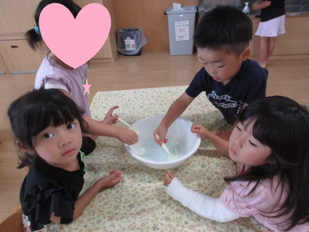 夏ならではの遊びや収穫した野菜の種とりなど、様々な取り組みに興味を持って楽しんだ子どもたちです🤩