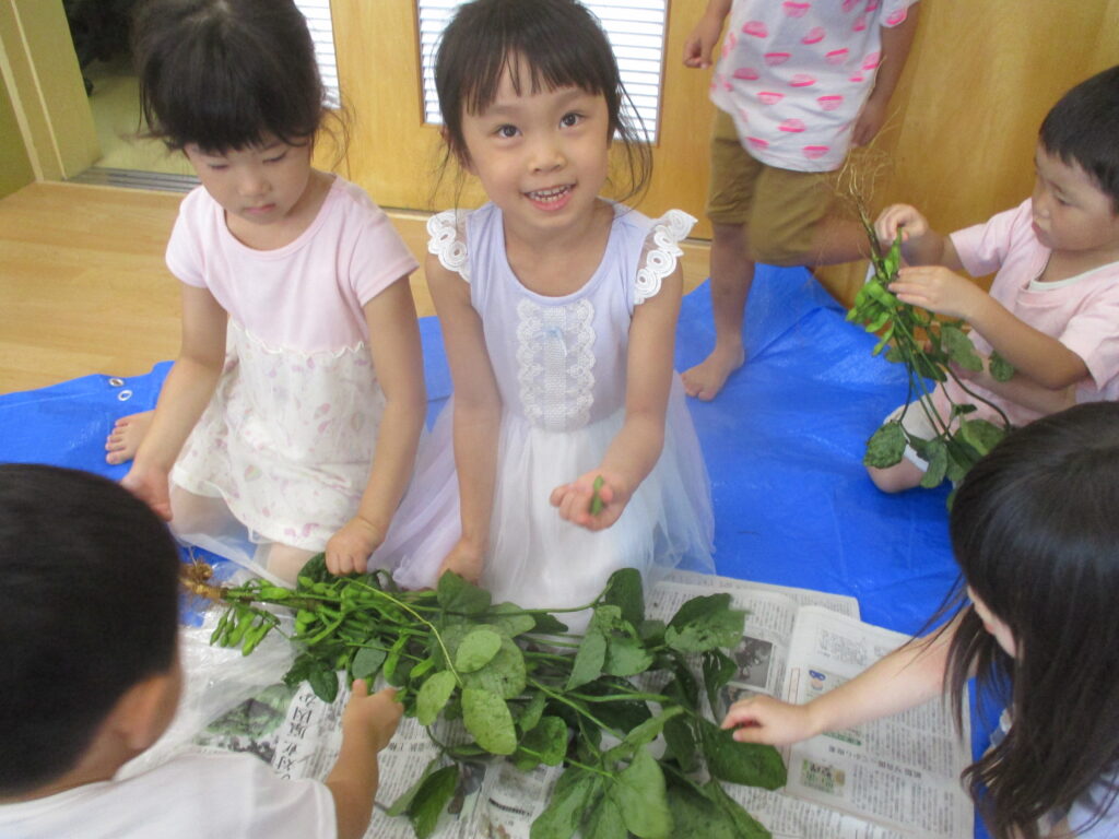 [かめだなかの保育園] 枝豆とりしました⭐