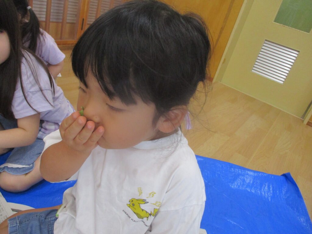 枝豆をくんくん!いい匂い~!