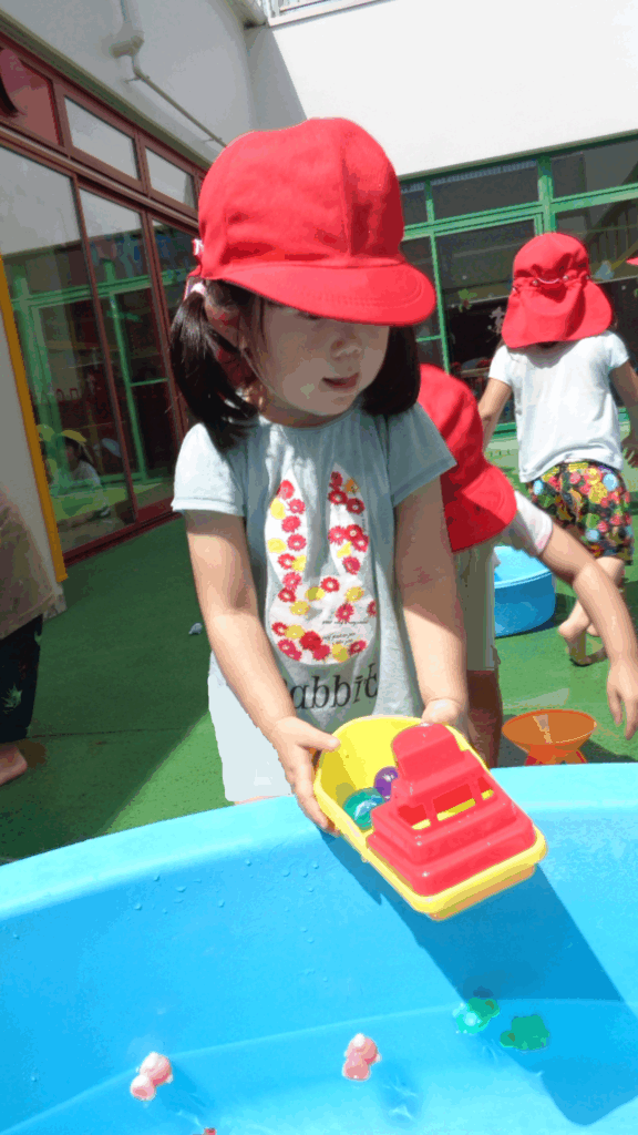 船を水の上に浮かべてみるよ!