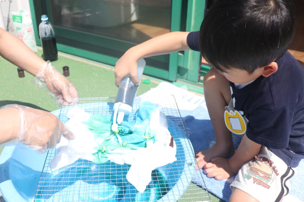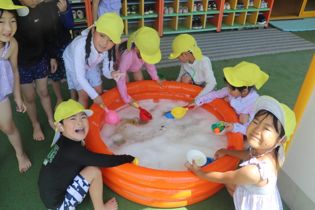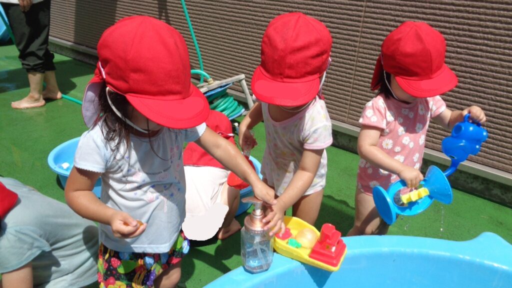 厳しい暑さの中でも、夏ならではの水遊びに目を輝かせ楽しむ姿を