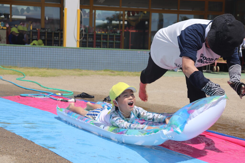 「3,2,1」の掛け声でウォータースライダー発射!!