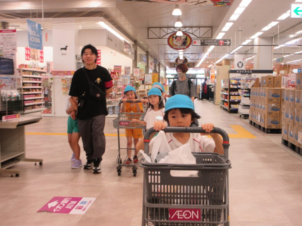 普段は大人がメインで行っていることを、クラスのお友だちと一緒に行った普段とは違う特別な活動。喜びながらカートを押して、商品を探し回る時間がとても愛おしく思えました。