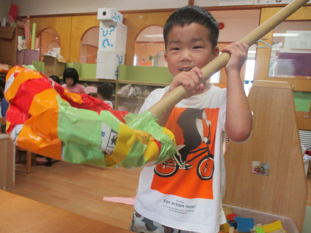 製作の中でガムテープを切り貼りすることも上手なぶどう組さん。