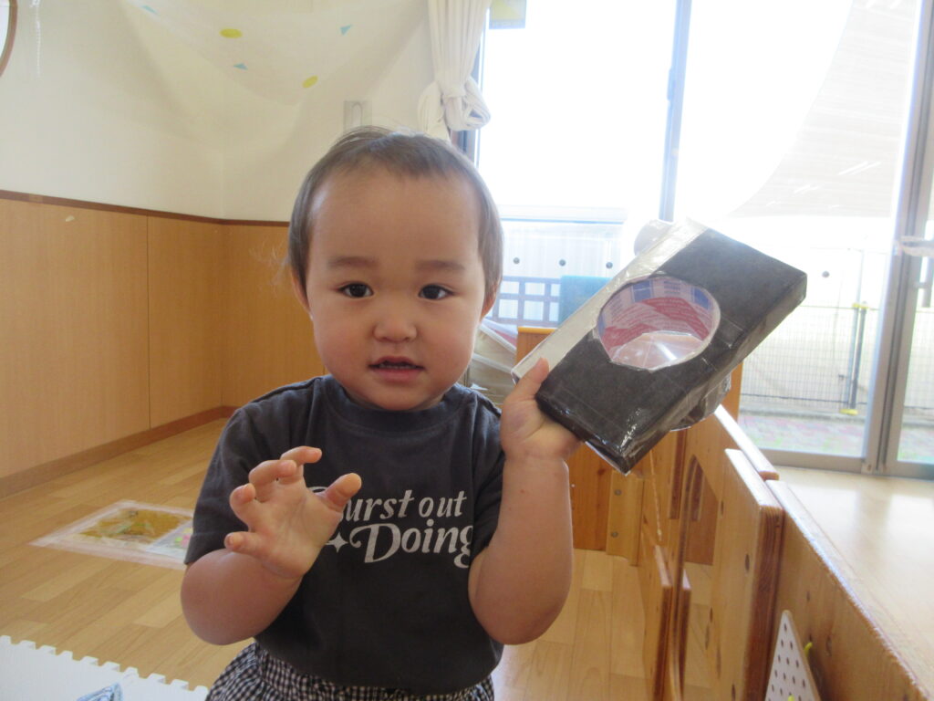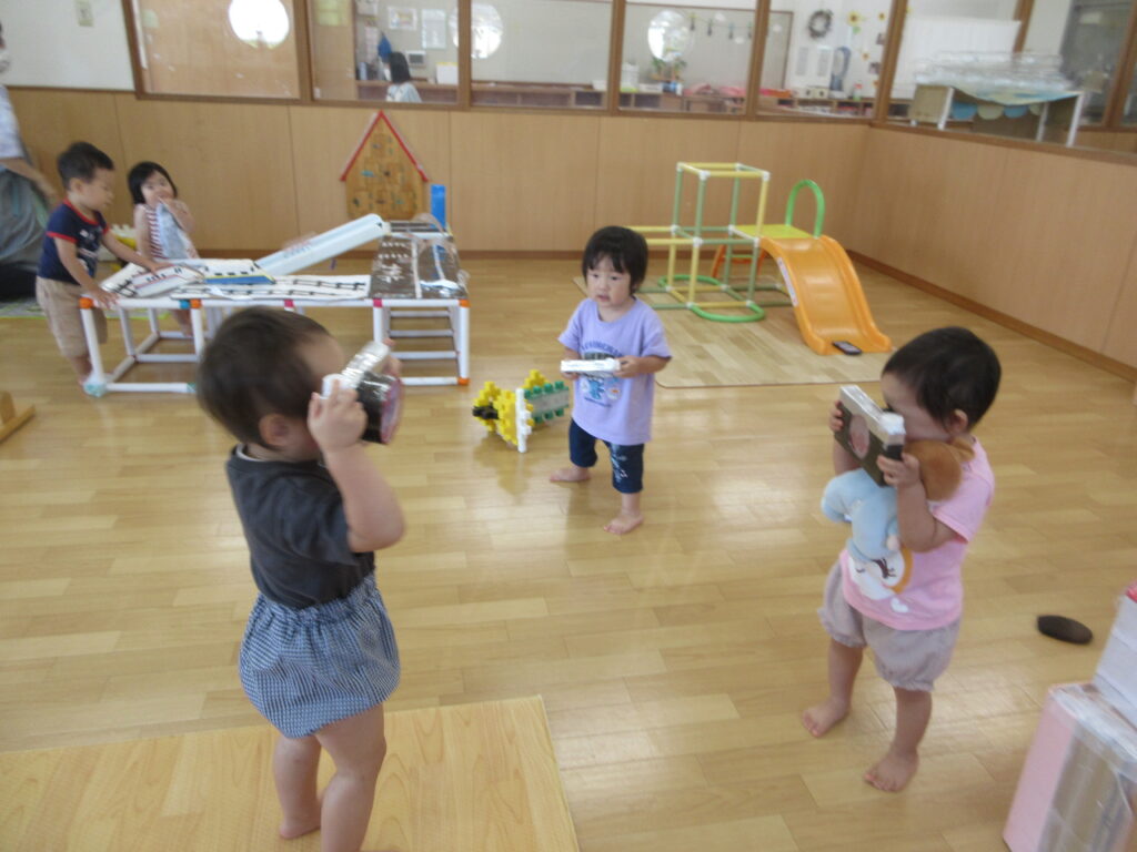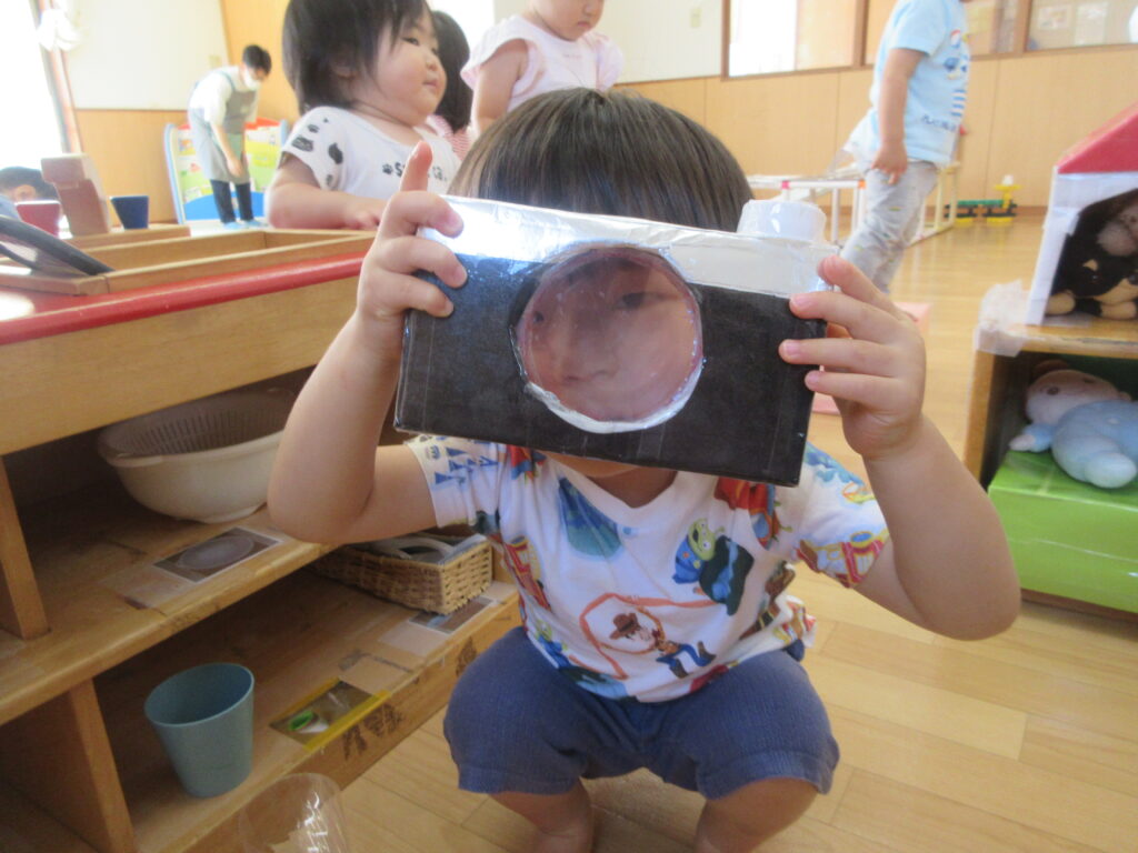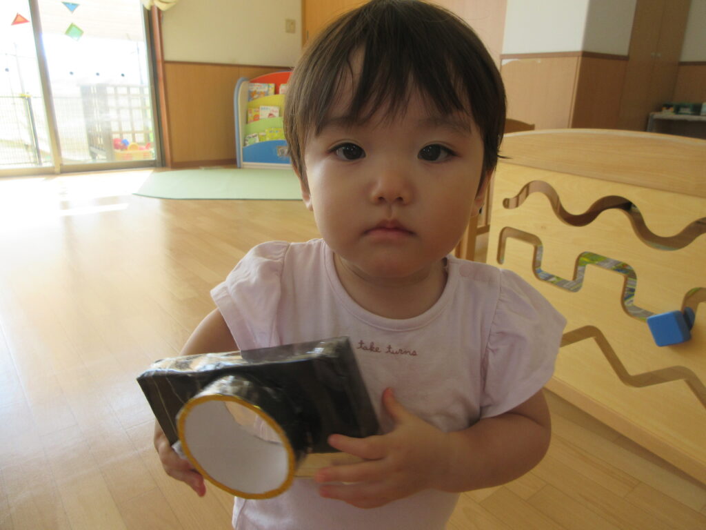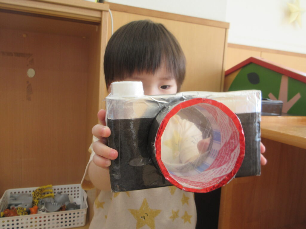 初めは絵本から始まったカメラごっこでしたが、色々なおもちゃを使って遊ぶうちに、楽しそうに遊んでいるお友だちの姿を見て興味を持つお友だちも増えてきました!