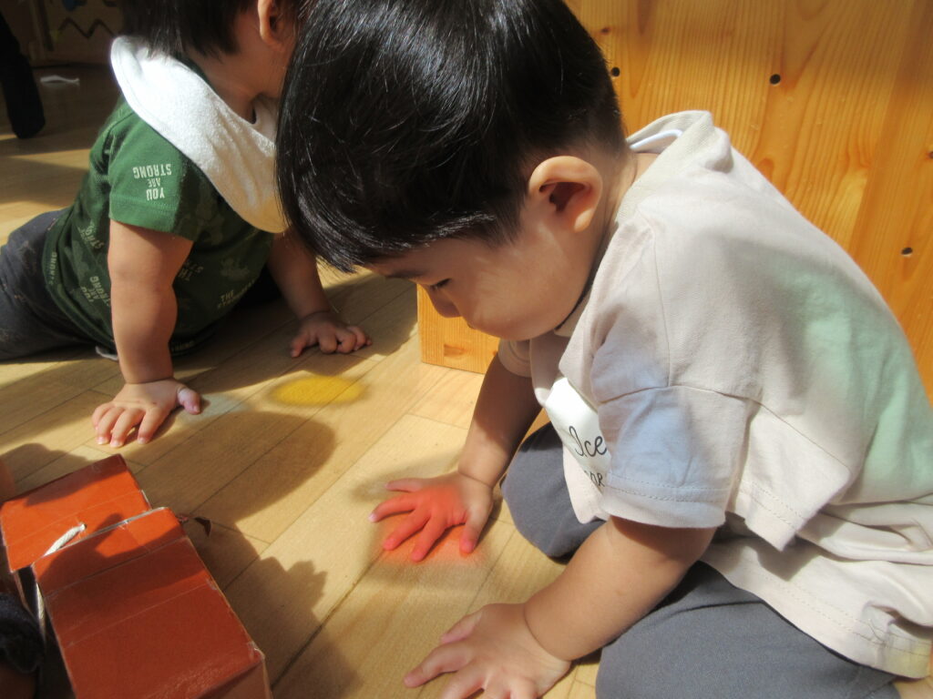 からだやお洋服にも色が映ることに気付いたようで、不思議そうによ~く観察していました🔍