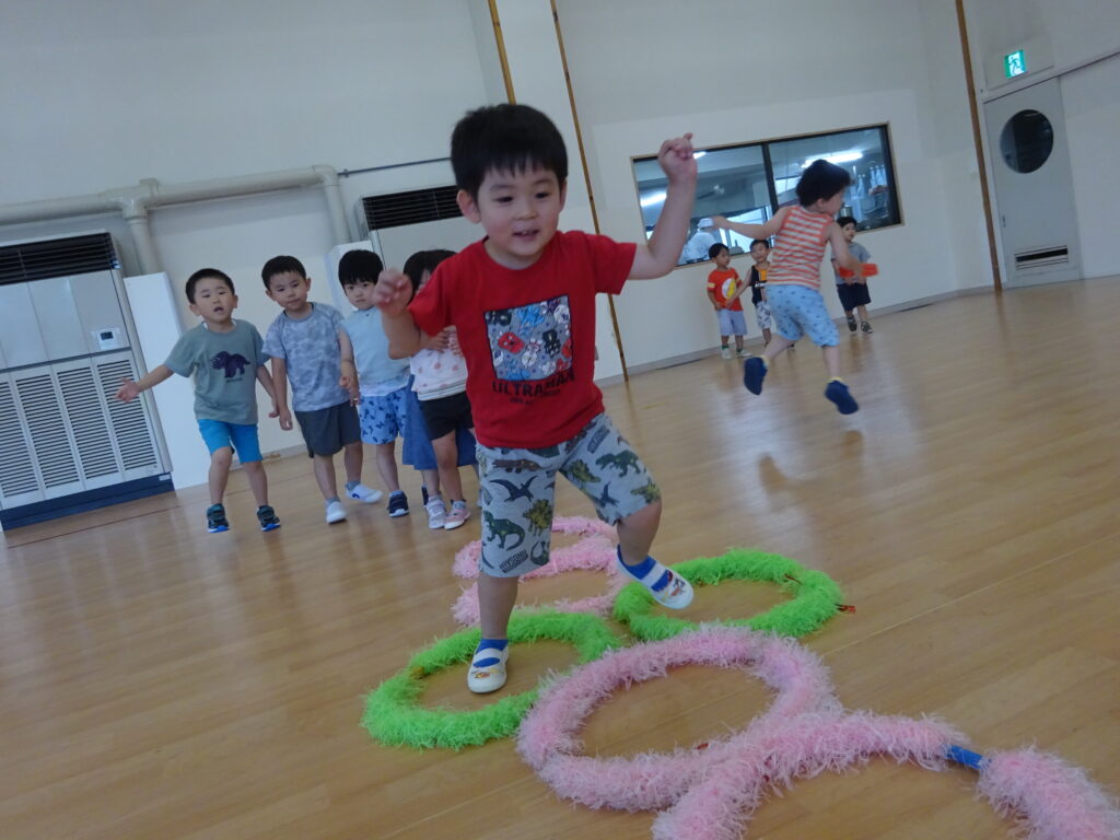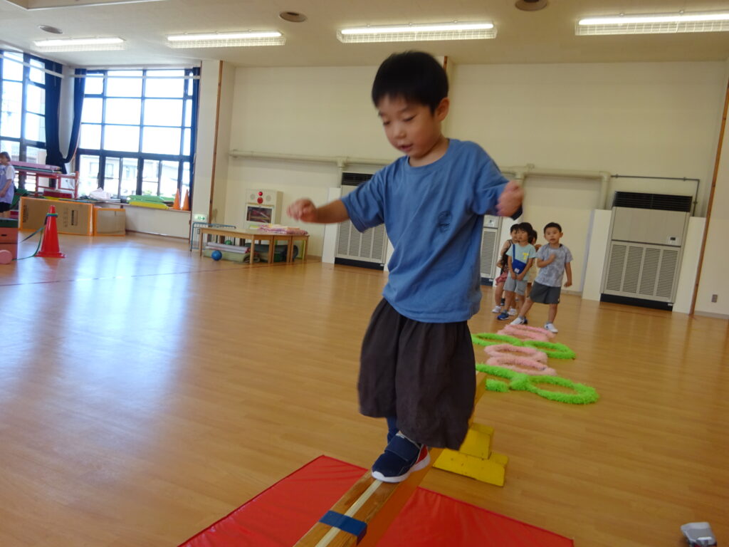 体を動かす遊びが大好きな子どもたち。今回ははしご渡りを紹介しましたが、他にも片足や両足跳びを取り入れたケンケンパ・バランスをとって歩く平均台渡り・トランポリンも楽しんで取り組んでいます。まのっこわくわくフェスティバルでは子どもたちが普段楽しんで取り組んでいる運動遊びを取り入れたいと思います。子どもたちの出来るようになった姿(成長)や友だちと協力して取り組む姿も見ていただけた良いなと思いますのでお楽しみに!!