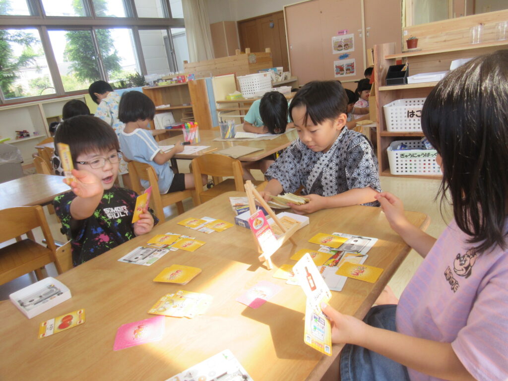 お部屋では「先生!!ナンジャモンジャやろ!!」とカードゲームのブームがまた始まっています。