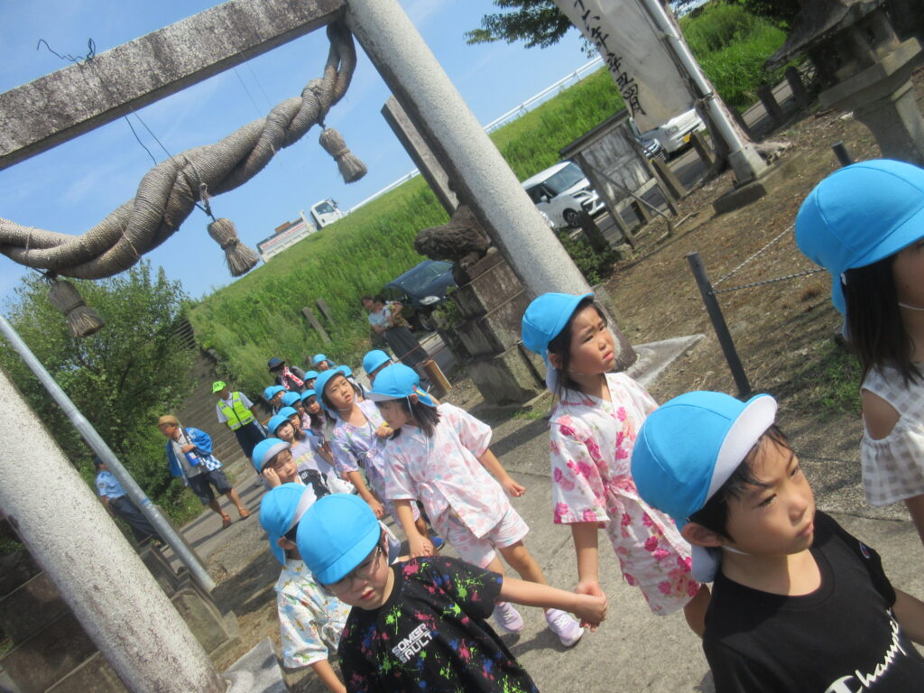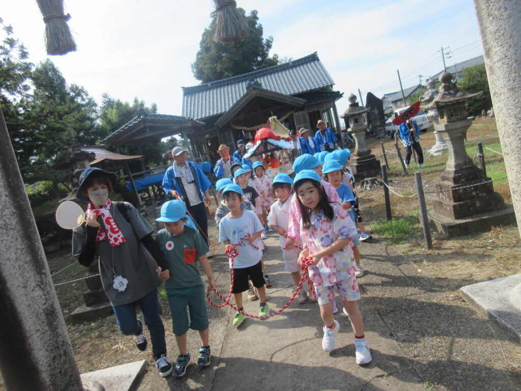 本日は庄廼瀬祭りという庄瀬地区のお祭りに参加をしてきました。クラスでのお祭りの参加は今回は初ということで朝からワクワクとした様子の子どもたち😚