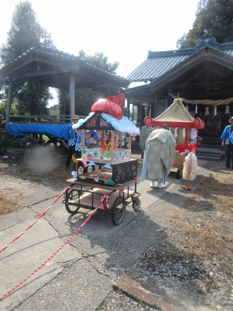 神社に着くと、みんなで作ったお神輿がお出迎え!!