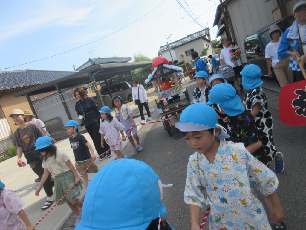 暑い中でしたが、最後まで歩き、お神輿を引っ張りました!!