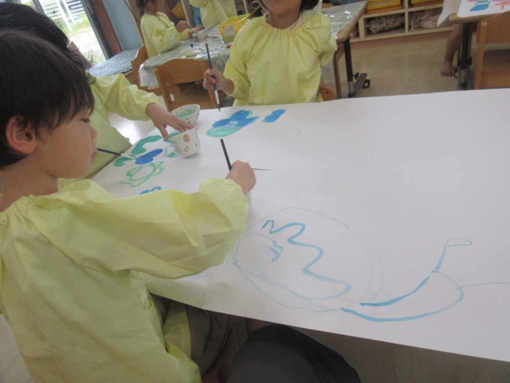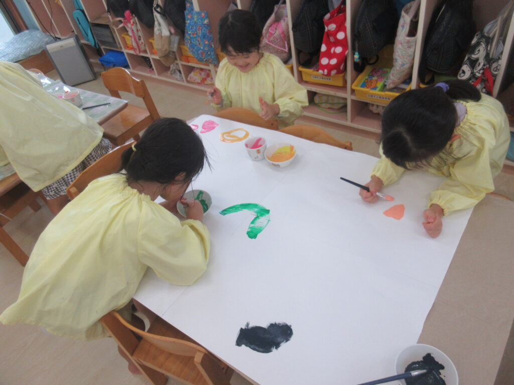絵の具は子どもたちが用意し、自由に行えるようにしています。