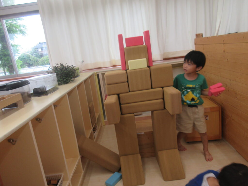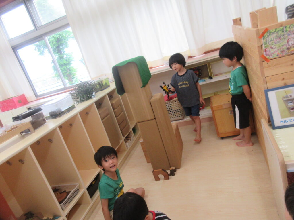 いくつかの玩具を使い、ジオラマづくりが大好きな子どもたち、その姿から保育室にソフト積み木を用意しました。