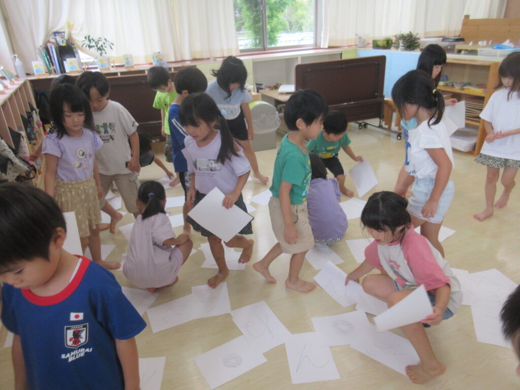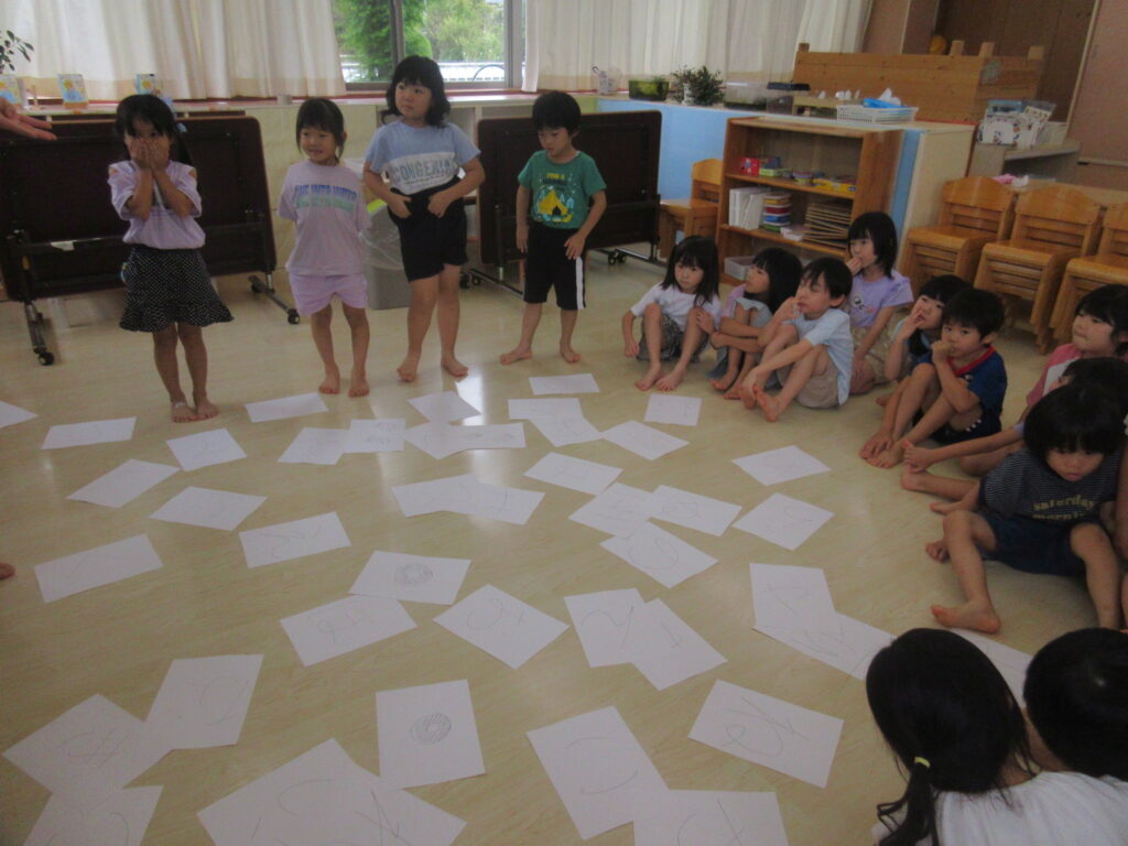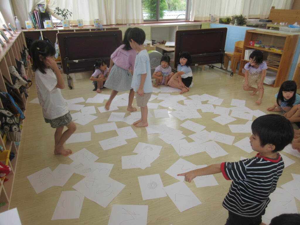 1人1枚ずつひらがなを集めて動物の名前を作ったり、短い名前をたくさん集めたり、順番が回ってくる前に作戦を立てたりと様々な子どもたちの姿が見られました。ひらがなが難しいという友だちも、ひらがなを読める友だちに教えてもらいながら行っていました。
